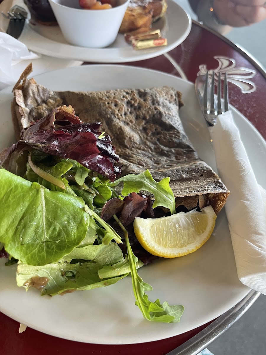 If you're in the mood for something savory, the Crespeou, a Provencal-style flat omelet filled with vibrant vegetables and goat cheese, is a heavenly choice that bursts with freshness. For a quick bite, the Quiche, available in various flavors such as ham, spinach, and mushrooms, is both delicious and satisfying, making it a popular pick among diners.